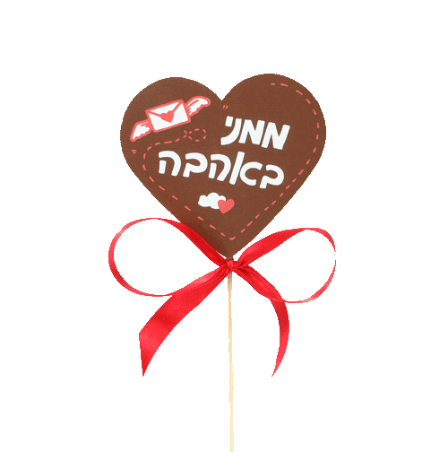 שוקולד לב על מקל ORNAT בכיתובים שונים: יום נישואים שמח, love you, ממני באהבה, אוהב אותך עד הירח ובחזרה, לחצי השני השלי, לנסיך שלי, נשיקות