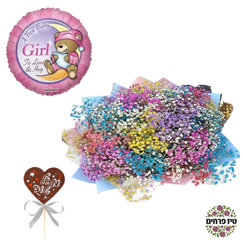 גיבסניות ציבעוניות שוקולד לב ובלון להולדת הבת.