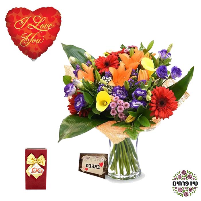 הפרח בגני שוקולד ובלון באהבה.