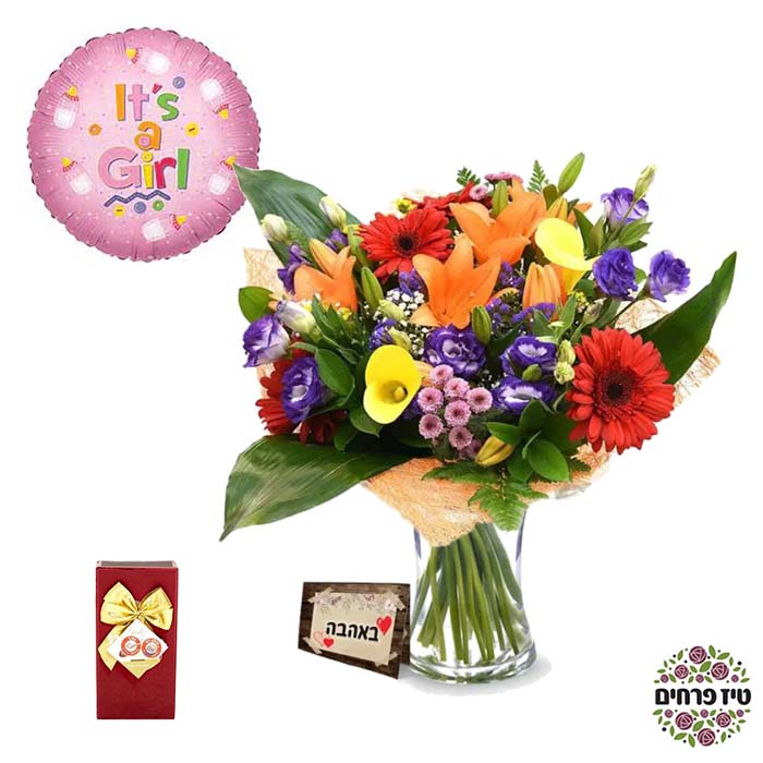 הפרח בגני שוקולד ובלון להולדת הבת.